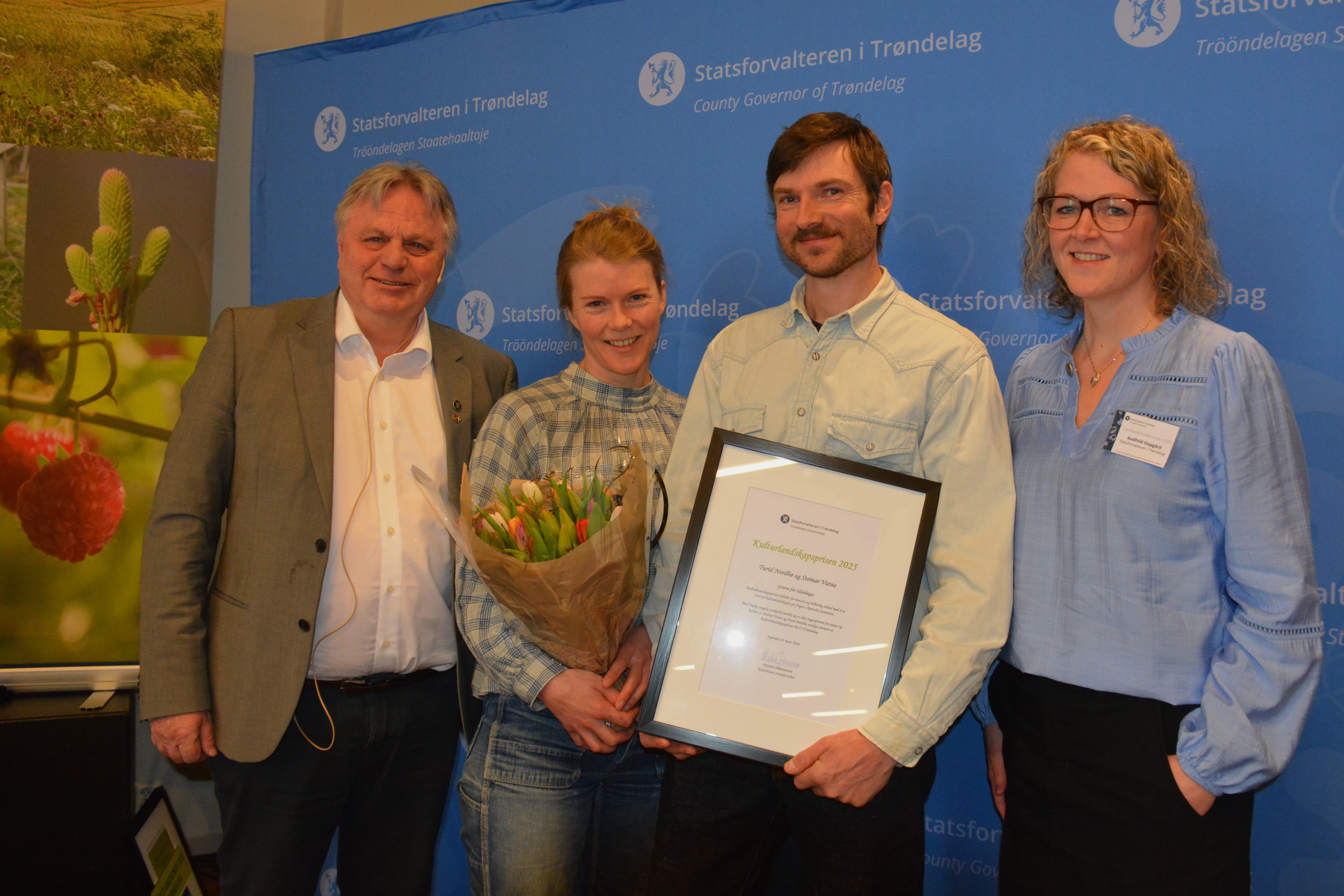 Turid Nordbø og Steinar Vatne er i dag, 20. mars, tildelt Kulturlandskapsprisen 2025. Prisen ble delt ut av konstituert statsforvalter Øystein Johannessen under Landbrukskonferansen 2026 i Stjørdal. Ekteparet driver småbruket Stigen i Rennebu kommune.